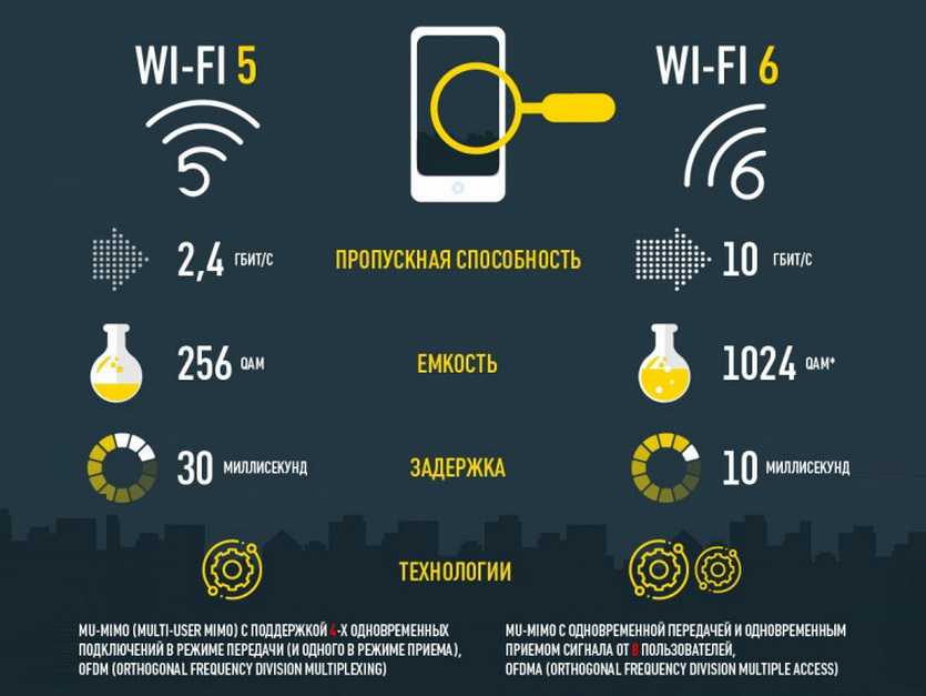 Схематичное отличие Wi-Fi 6 от Wi-Fi 5