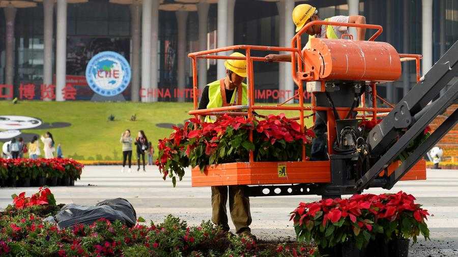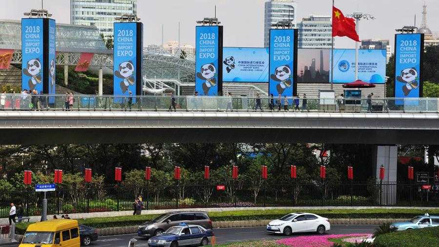 Реклама Китайской международной выставки импорта в одном из районов Шанхая