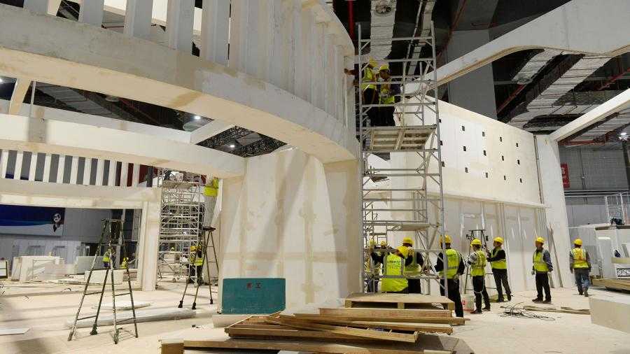 Внутренние работы в здании конгресс-центра в Шанхае