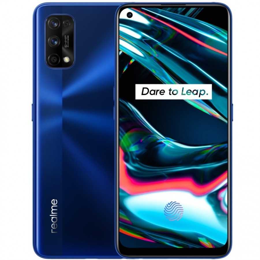 Realme 7 Pro получил интересный дизайн. Передняя панель прикрыта закалённым стеклом. В её верхней части имеется аккуратный вырез под селфи-камеру с датчиком на 32 Мп.