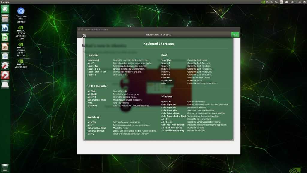 Плата быстро загрузилась в Ubuntu, и, после прохождения мастера настройки, чтобы принять пользовательское соглашение, выбрать язык, раскладку клавиатуры, часовой пояс и настроить пользователя, система выполнила некоторые настройки, и через пару минут мы были готовы идти.