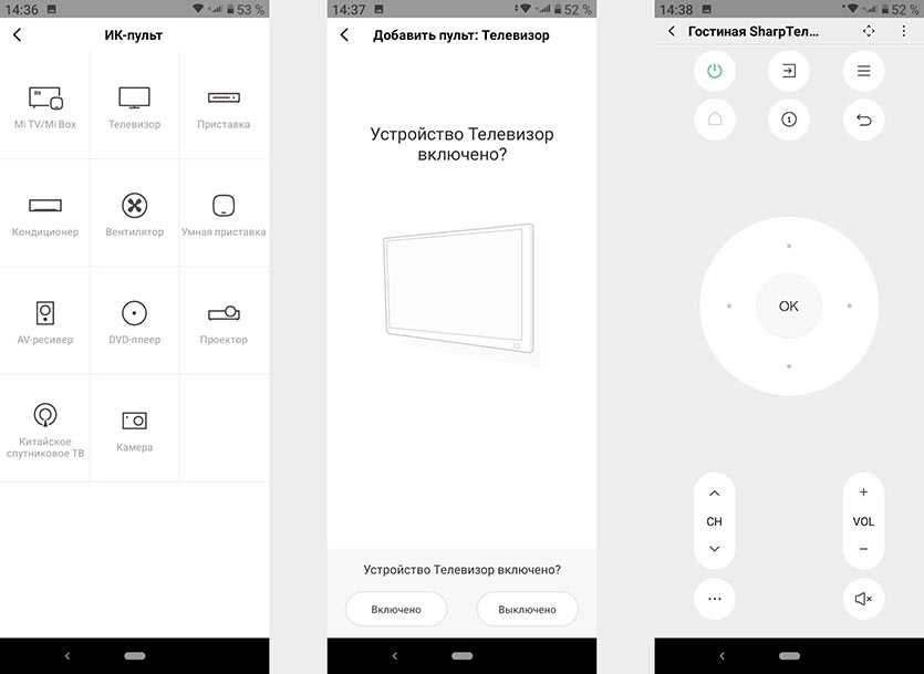 Обучать смартфон не нужно, просто находим модель по производителю и перебираем предлагаемые настройки.