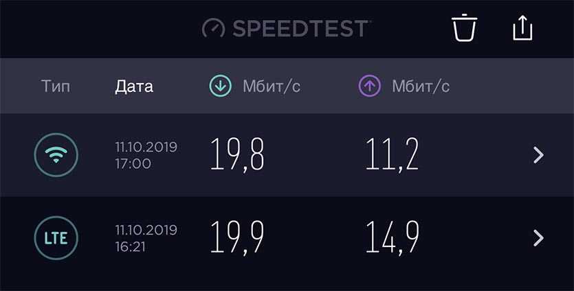 Замер скорости на iPhone с подключением по LTE и через режим модема на Qin 1S+