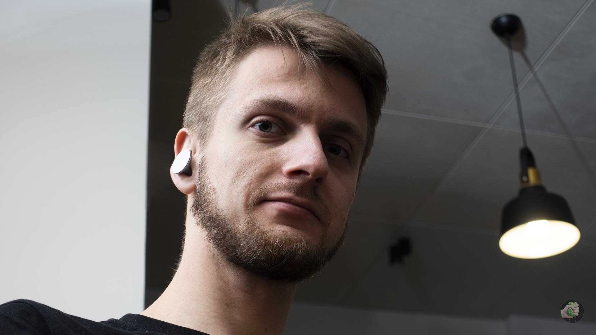 Главное достоинство этих наушников — внешний вид, выделяющий их среди всех остальных TWS, — становится и главным недостатком. Распаковав их и вставив в ухо, я побежал к зеркалу и заржал: вид довольно забавный. Казалось, что у меня в ушах внезапно появились плаги (это штуки, которыми закрывают ушные тоннели).