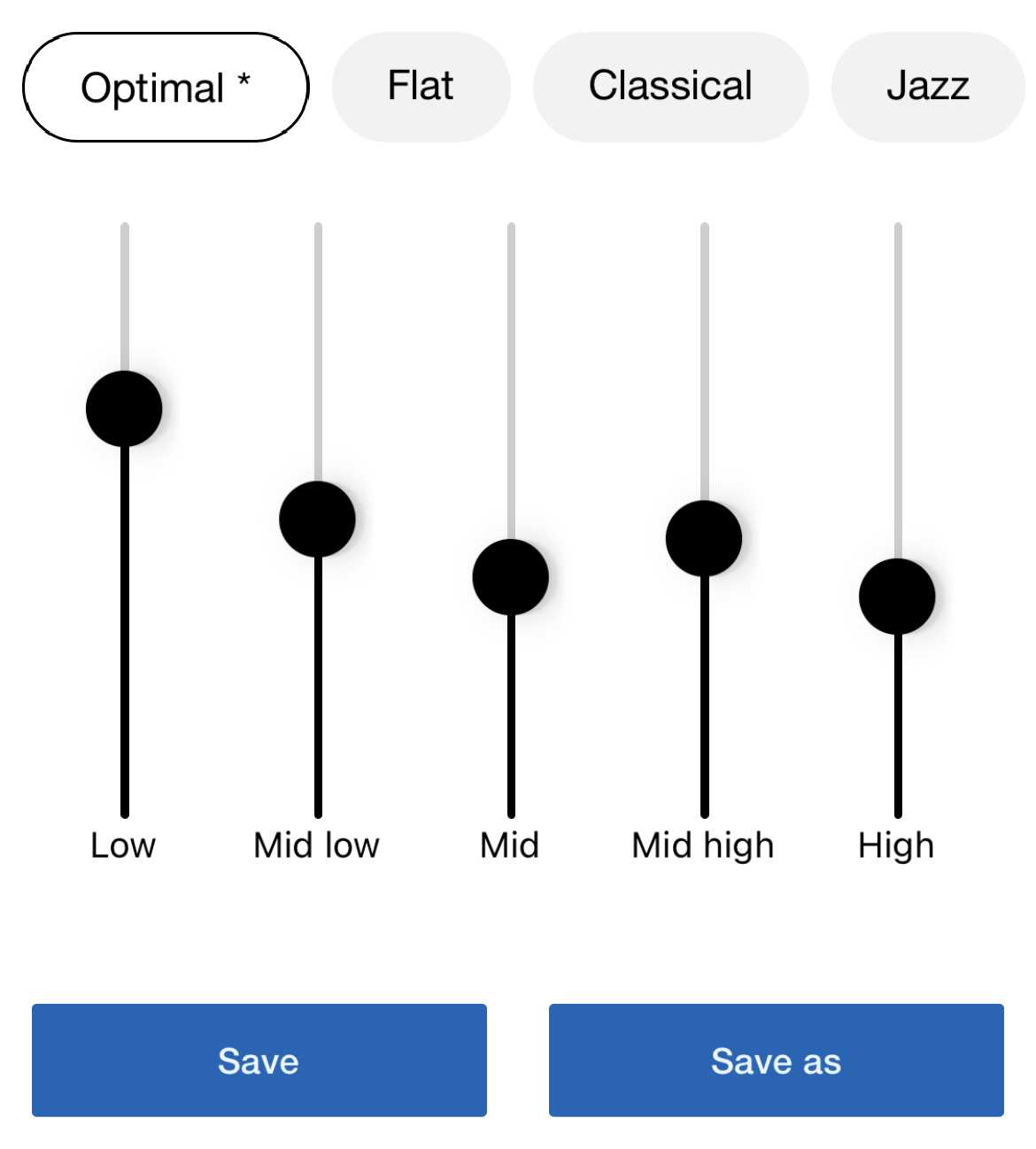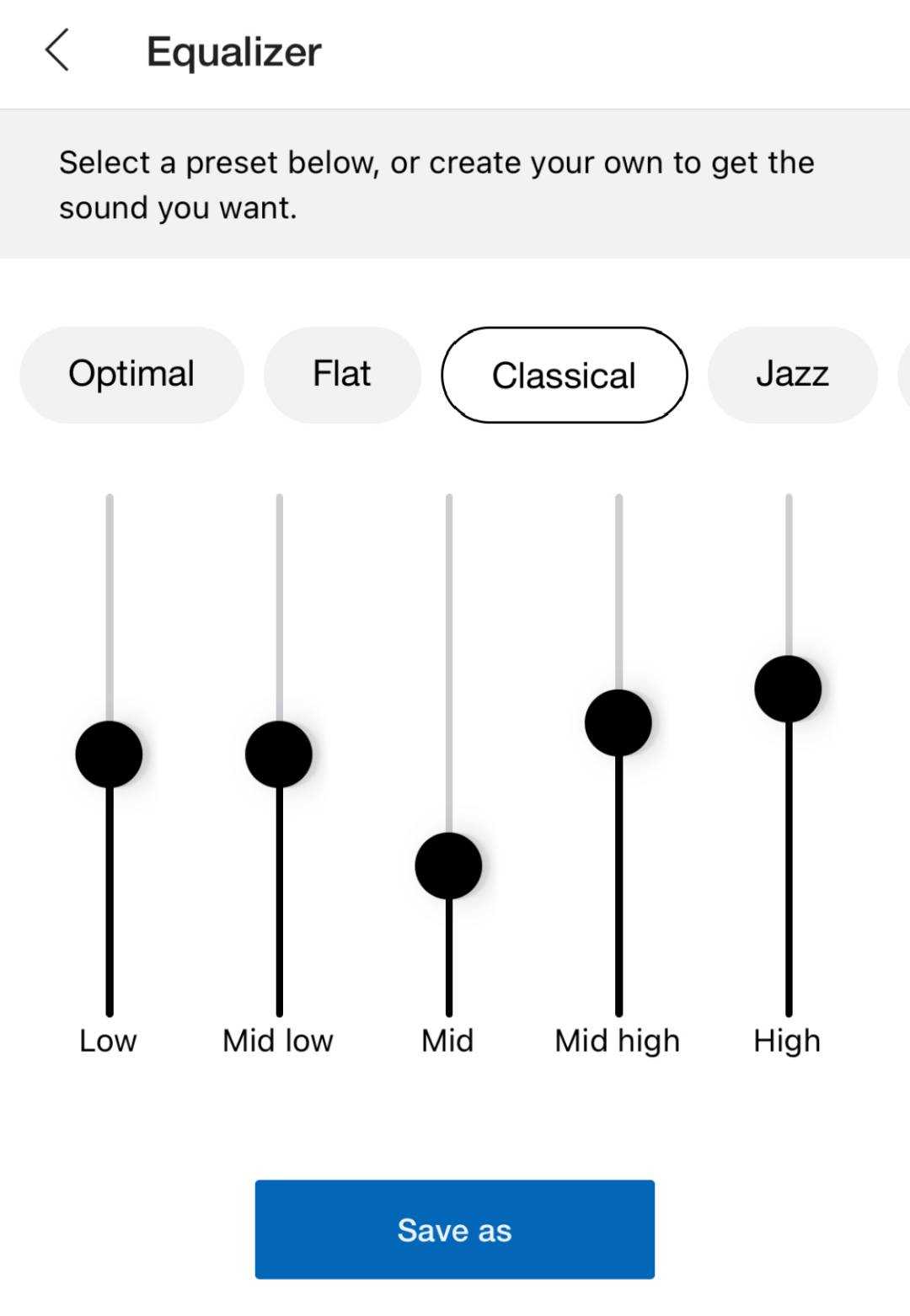С эквалайзером есть проблемы: в приложении есть несколько пресетов, внося изменения в которые у вас не получится их откатить. Единственная кнопка — Save as: