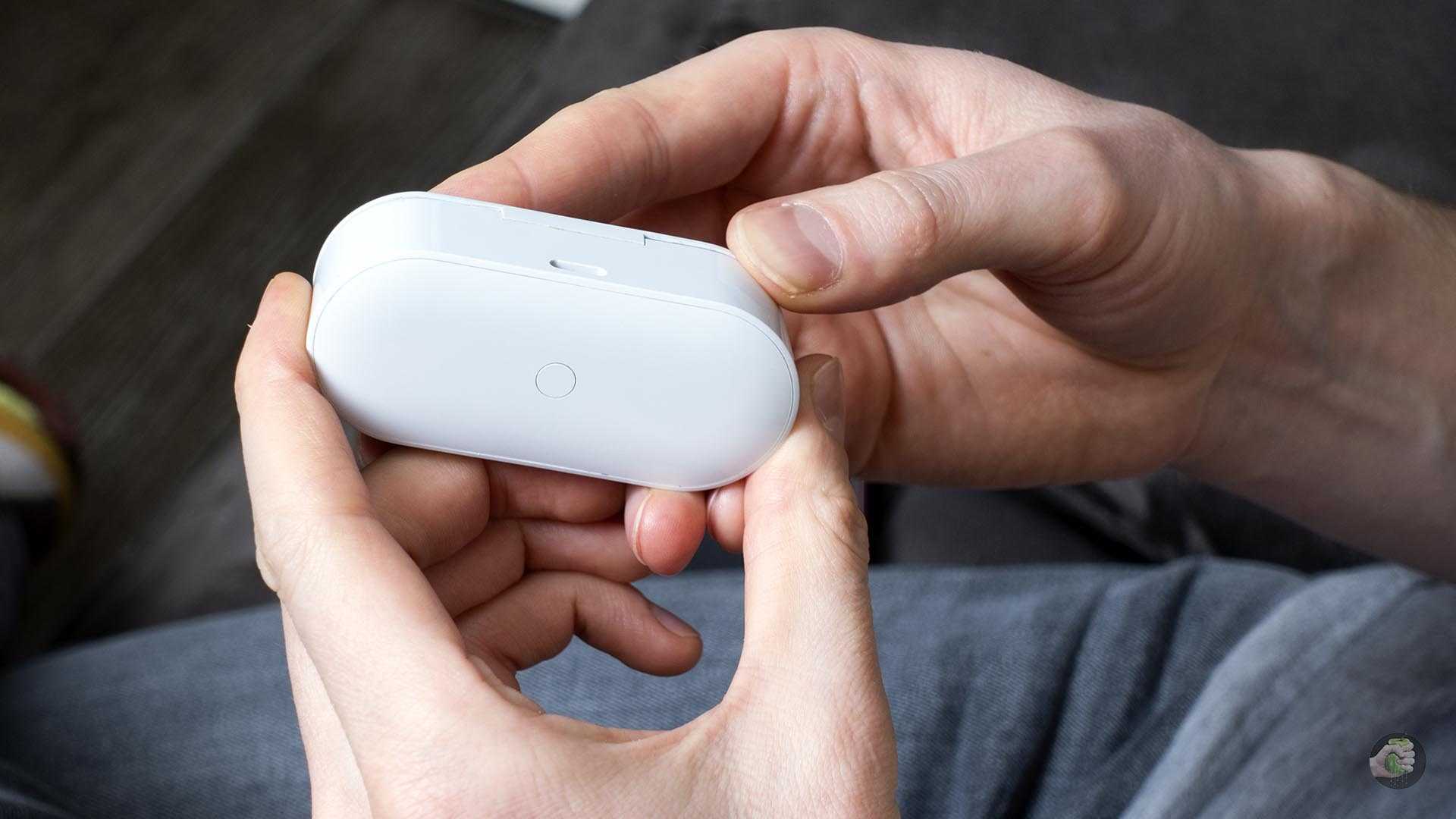 Снизу кейса кнопка сопряжения, а сзади — порт USB Type-C: