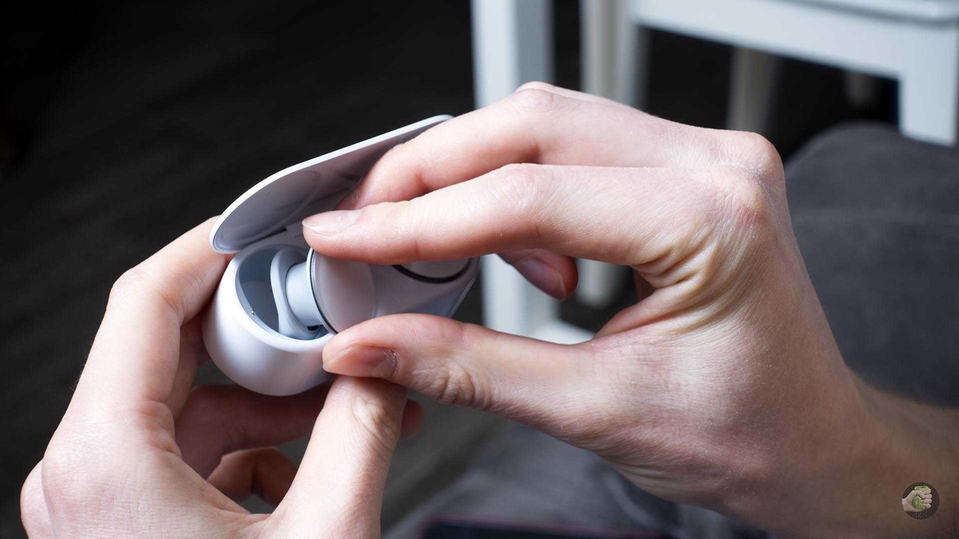 В режиме гарнитуры используются микрофоны только правого наушника. Качество очень посредственное, поэтому покупать эти наушники для связи я бы не советовал. Google Pixel Buds справляются с этой задачей гораздо лучше, несмотря на меньший форм-фактор: