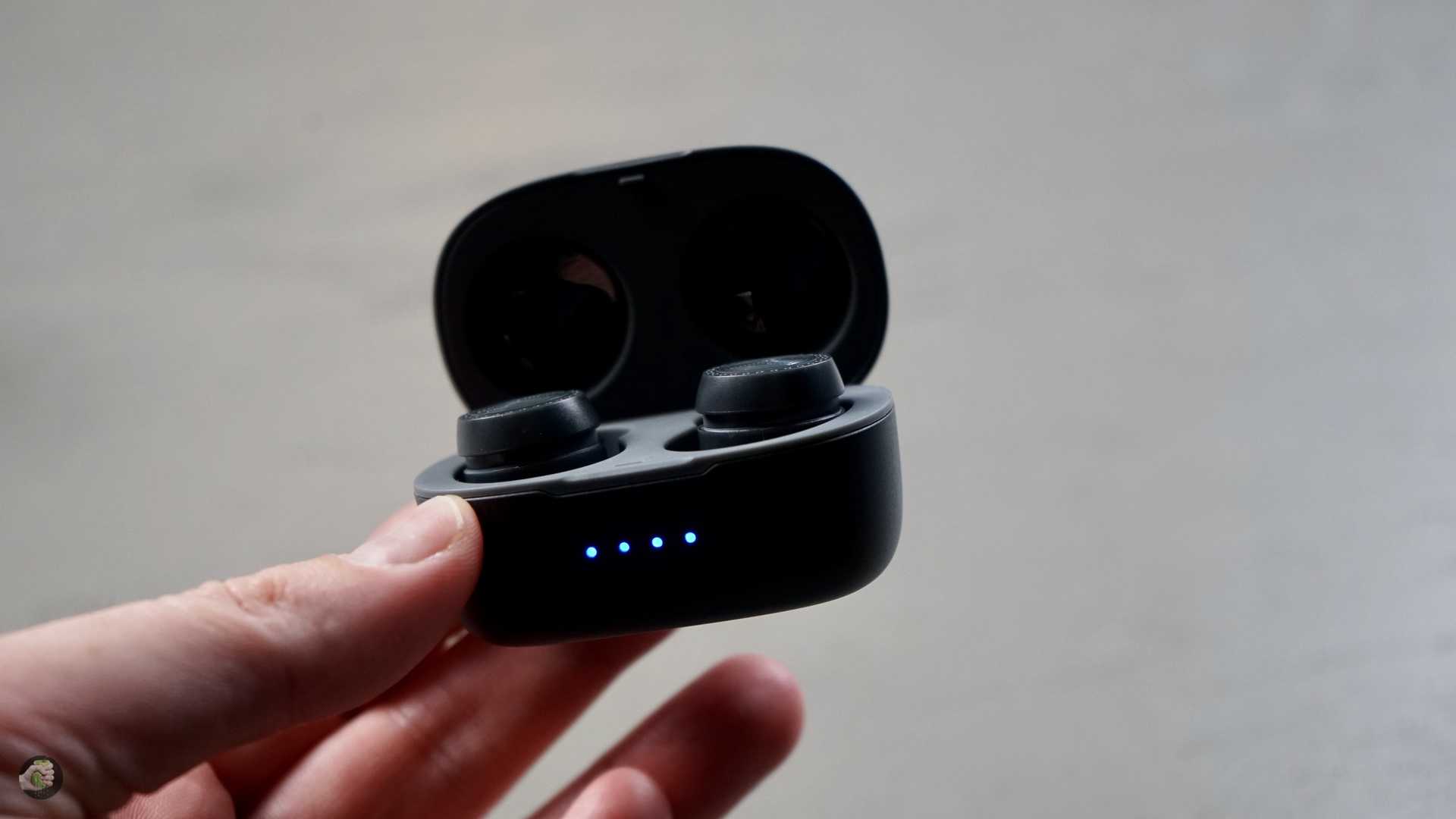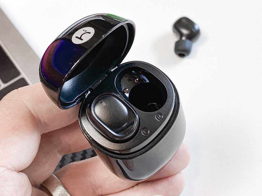 Футляр по размерам чуть больше AirPods, сделан из шероховатого пластика, легко открывается и закрывается. Никаких проблем с позиционированием наушников: вставили, они сели в гнёзда, всё ок. Контактные площадки сделаны хорошо. Световые индикаторы есть на каждом наушнике, маленькие, аккуратные. На футляре тоже есть индикаторы, они подскажут оставшееся время работы.