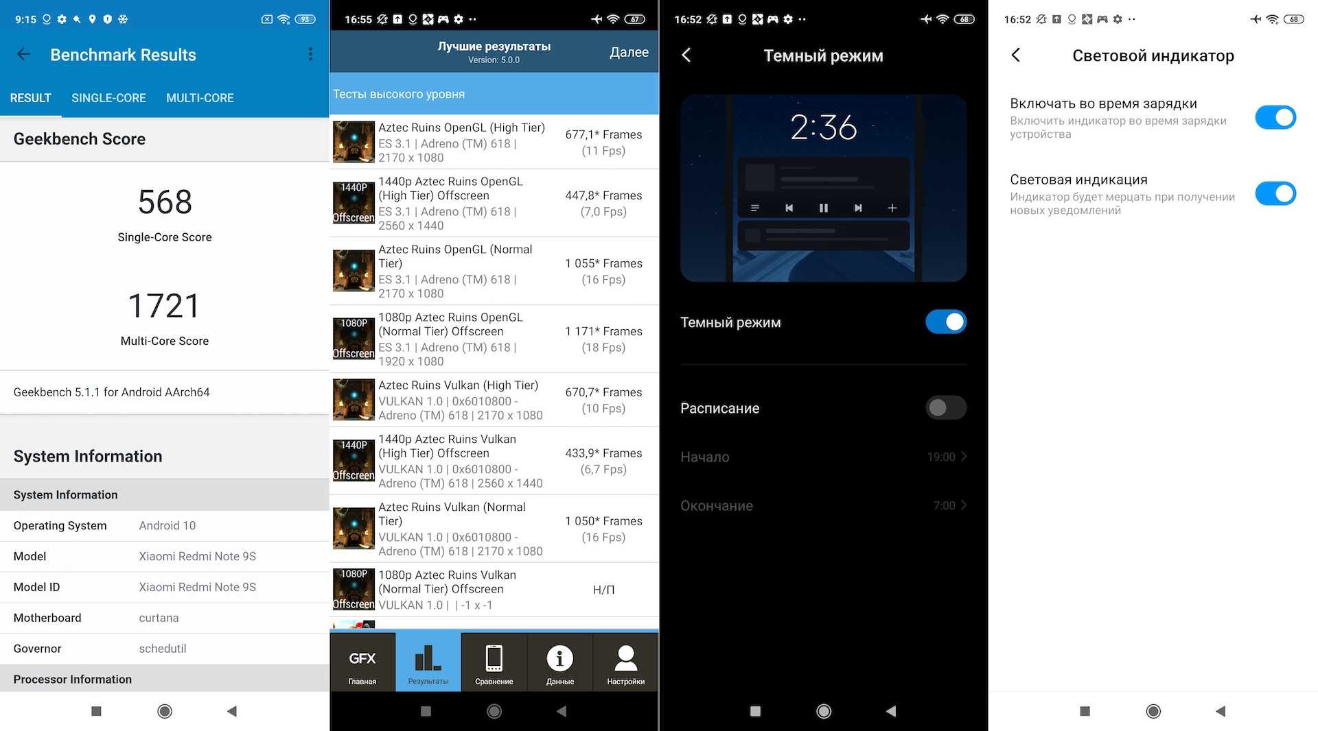 К производительности у Redmi Note 9S вопросов нет: игры летают, графика отличная, результаты бенчмарков тоже на высоте для телефона такого уровня. Под нагрузкой не проседает, но ощутимо греется в тяжёлых испытаниях вроде синтетических тестов или игр.