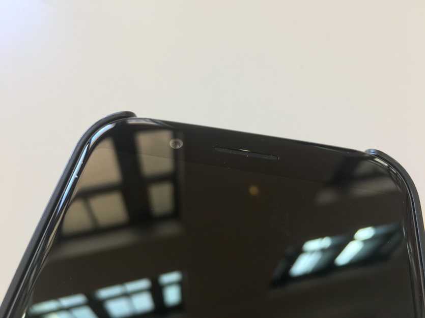 На передней панели телефона — 5.99-дюймовый экран с тонкими ободками по краям, минимальным«лбом» сверху и «подбородком» снизу. Корпус построен на базе черной анодированной алюминиевой рамы. Вверху виден небольшой вырез под слуховой динамик и рядом глазок фронтальной камеры.