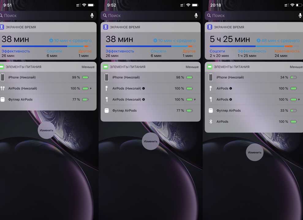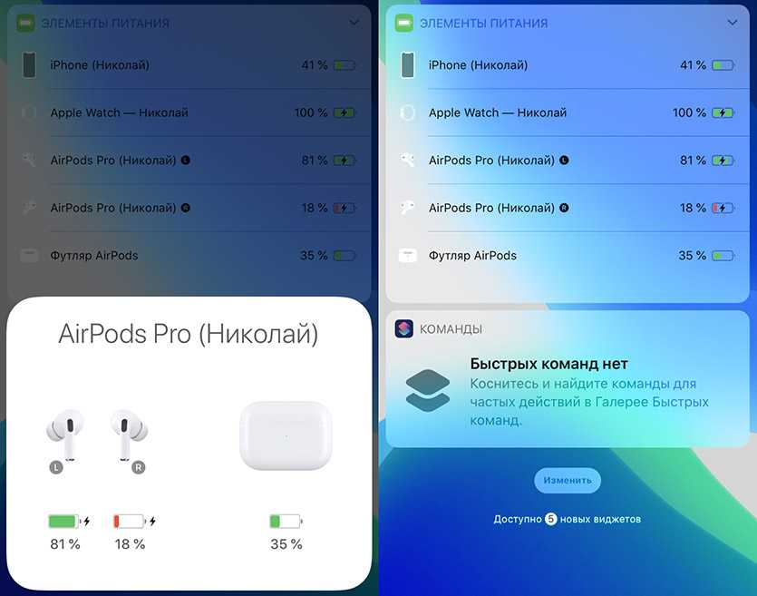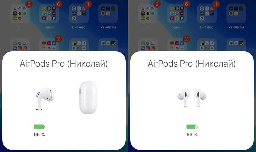 Приятное нововведение: когда наушники в кейсе, показывается заряд каждого элемента комплекта.