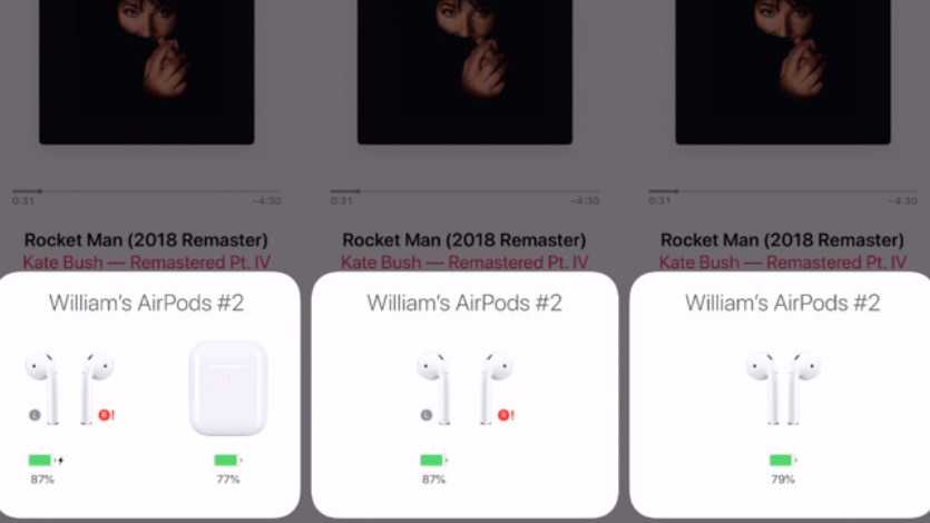 Когда открываешь крышку кейса у оригинальных наушников, появляется окно с показом заряда обоих наушников и кейса, крутящиеся вокруг своей оси, и когда уже вынимаешь наушники, окно переходит в показ заряда каждого наушника.