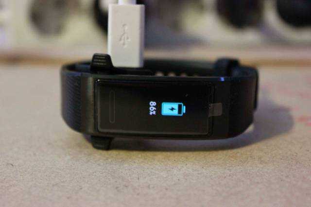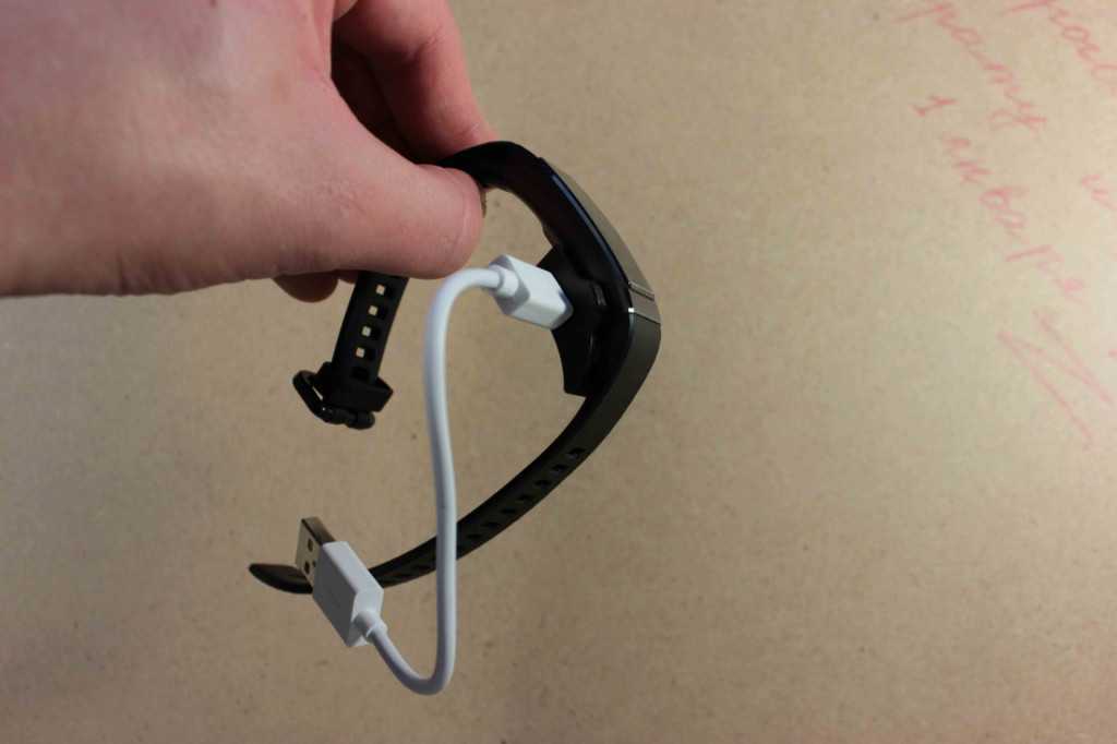 Единственная моя претензия к конструкции устройства заключается в следующем. В данном фитнес-браслете ремешок разделен на 2 две части, каждая из которых крепится к капсуле с помощью пластмассовой клипсы. То есть производителю ничто не мешало сделать на одной стороне капсулы коннектор USB, который был бы спрятан в ремешке. Тогда можно было бы отказаться от любых проводов, а для зарядки устройства пользователю нужно было бы лишь найти источник энергии.