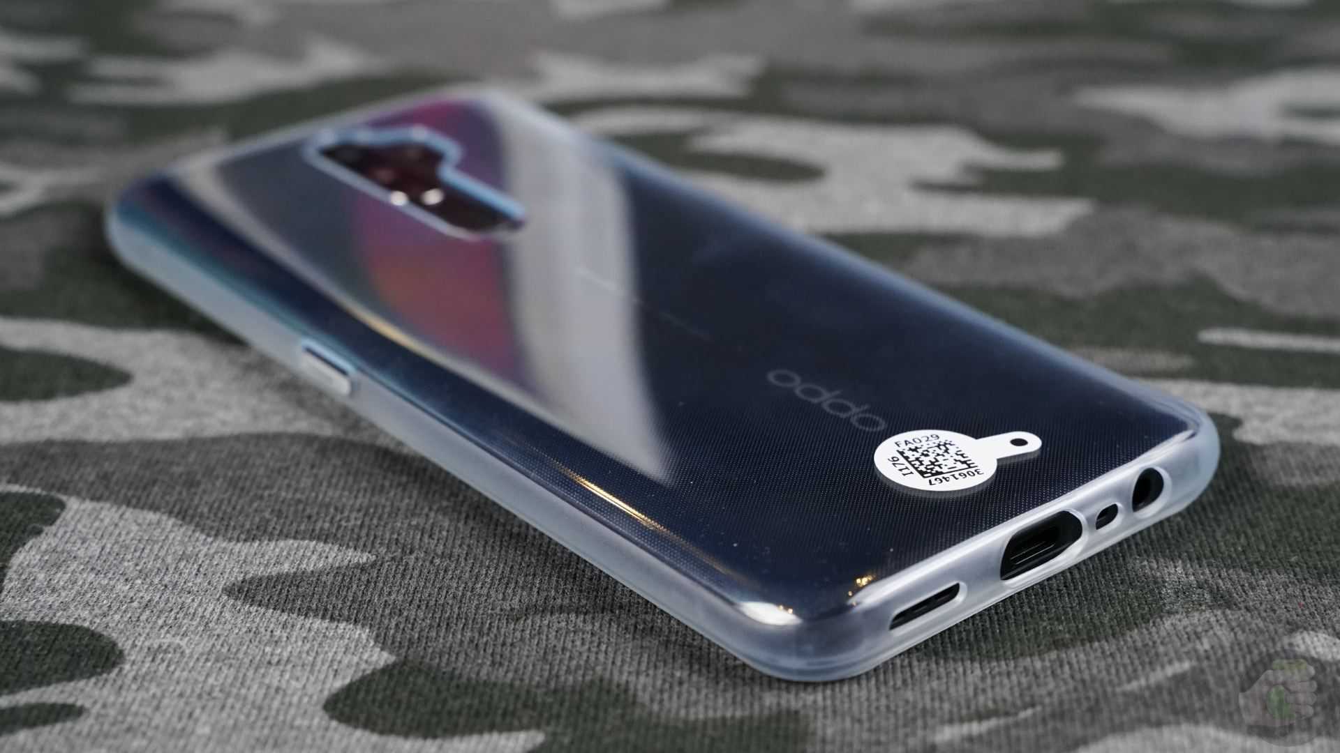 Комплектный силиконовый чехол защищает корпус OPPO A5 (2020) от царапин