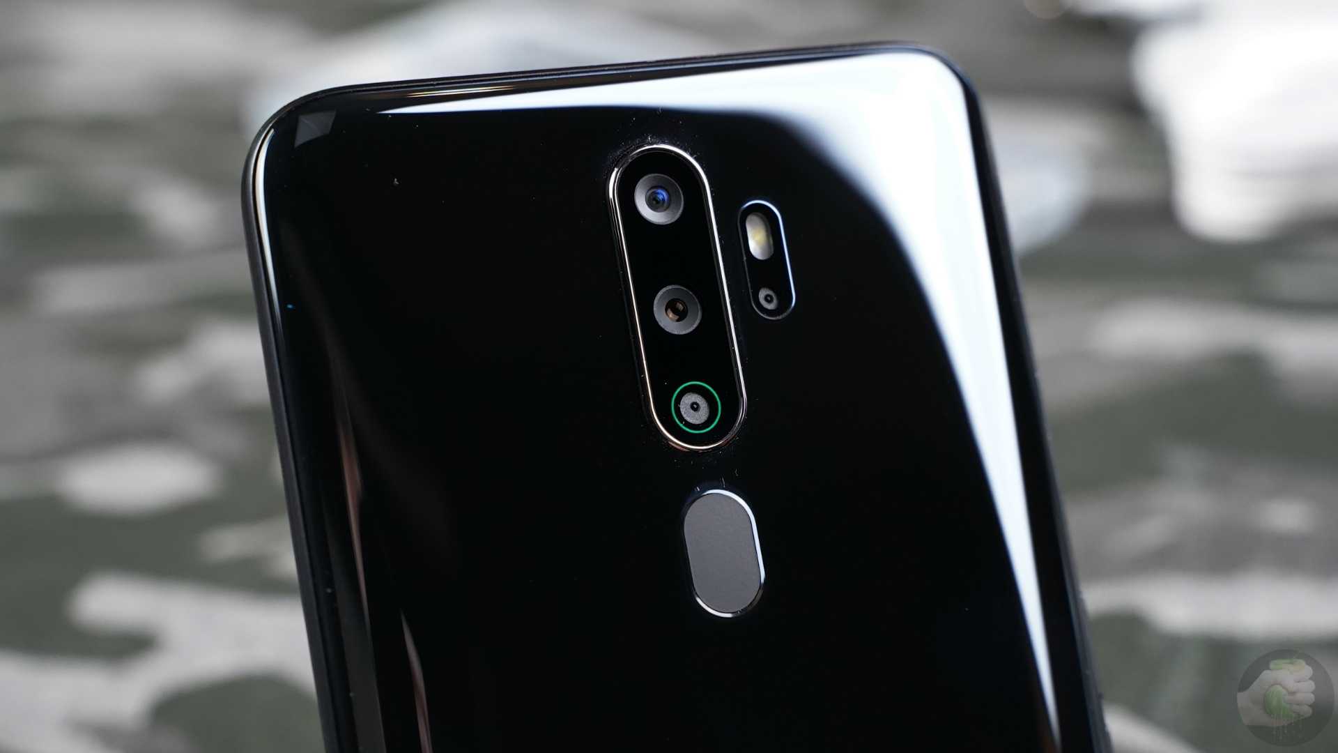Камеры и сканер отпечатков пальцев OPPO A5 (2020) расположены рядом