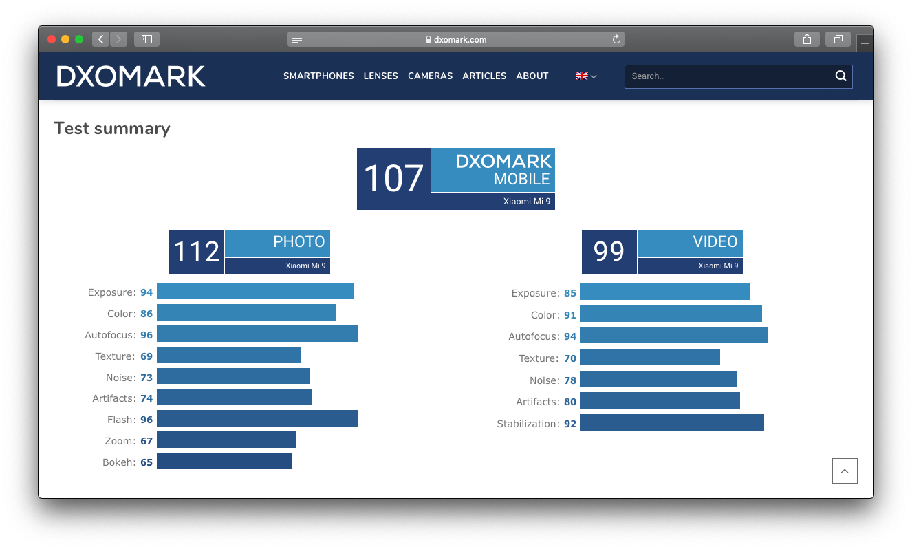 И вот эти камеры товарищи из DxOMark оценили суммарно на 107 баллов!