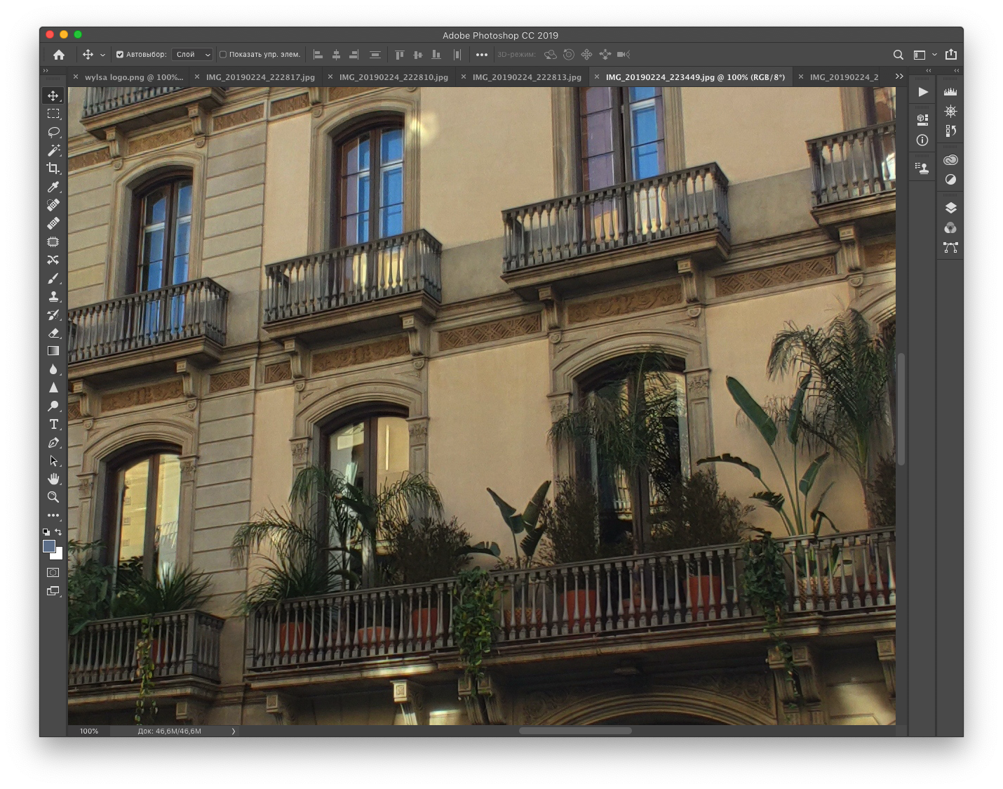 И первый артефакт: что-то непонятное произошло с тёмной областью под балконом. Кажется, будто бы эти места специально заблюрили. Видимо, камере не хватило информации в тени, и она дорисовала недостающие элементы.
