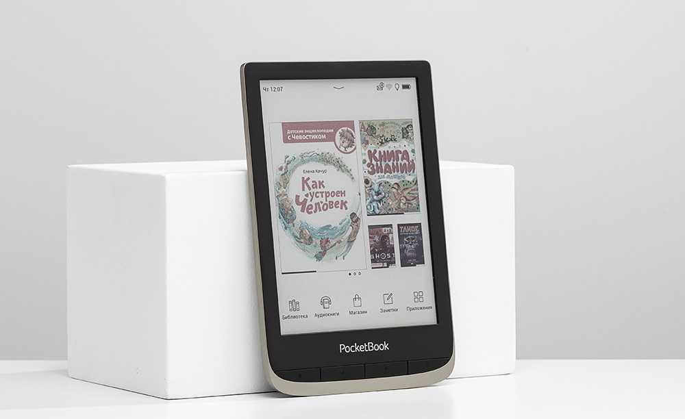 У PocketBook 633 Color не только до сих пор обходят стороной такое странное решение, но и «топят» экран примерно на 2 миллиметра в корпус. Поэтому даже если ридер упадет на асфальт, велика вероятность того, что непосредственно дисплей останется целехоньким. Царапины появятся только на рамке вокруг экрана.