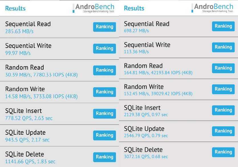 Слева — память Pocophone F1, справа — обычного смартфона за 20 тыс. рублей