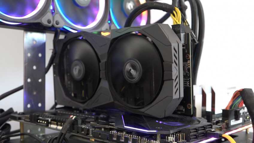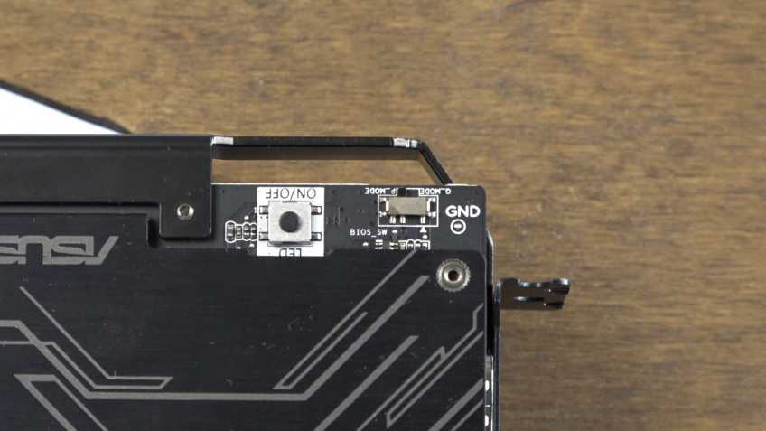 Называется это Dual Bios и у него есть два режима: Power Mode с агрессивным поведением вентиляторов и Quiet Mode, в котором видеокарта старается вести себе как можно тише. Вообще эти режимы настраиваются в комплектной программе GPU Tweak 2. Но заниматься этими переключениями вообще нет смысла, на открытом стенде я эти вентиляторы не замечал даже под полной нагрузкой.