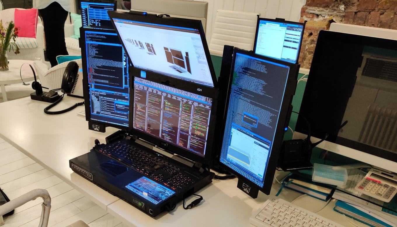 В общем, если богу мониторов нужно больше мониторов, это не проблема. Expanscape Aurora 7 – самый криповый ноутбук CES 2020. Семь мониторов (четыре 17,3-дюймовых 4К-разрешения и три разрешением 1920×1200 точек) обслуживают чип Core i9-9900K и графическая карта Nvidia GTX.