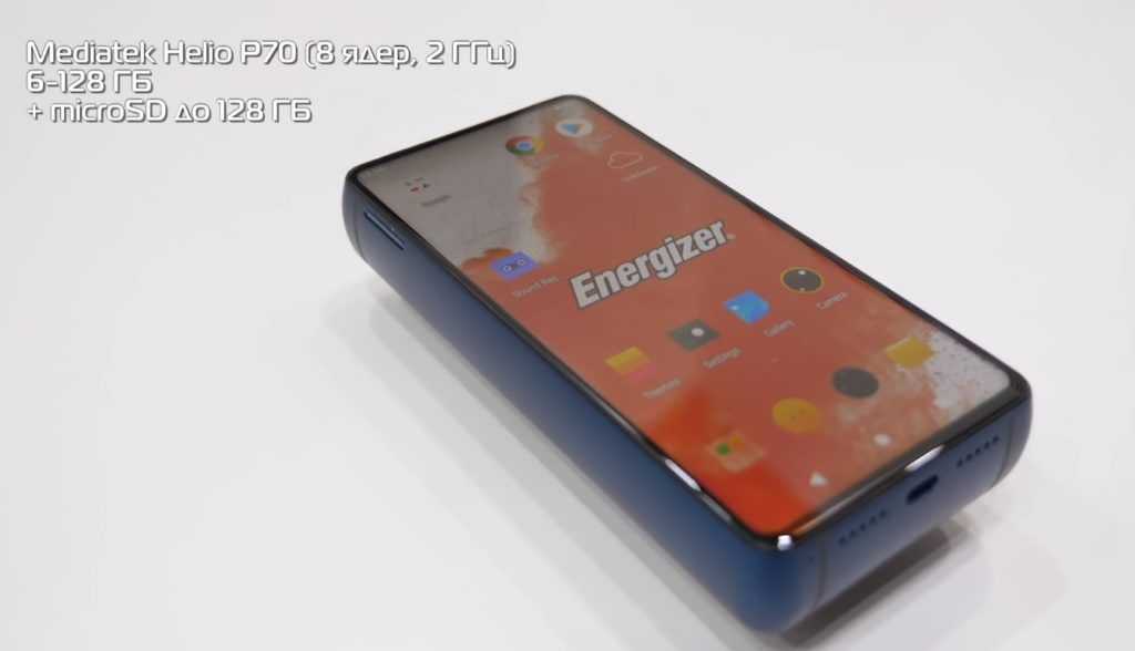 Устройство от Energizer получило 6,2-дюймовый дисплей с разрешающей способностью 2340 х 1080 точек, выдвигающуюся фронтальную камеру с 16-Мп и 2-Мп датчиками изображения, тройную основную камеру (12, 5 и 2 Мп), 6 Гбайт оперативной и 128 Гбайт постоянной памяти.