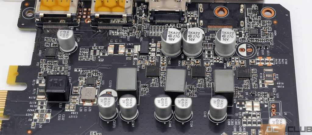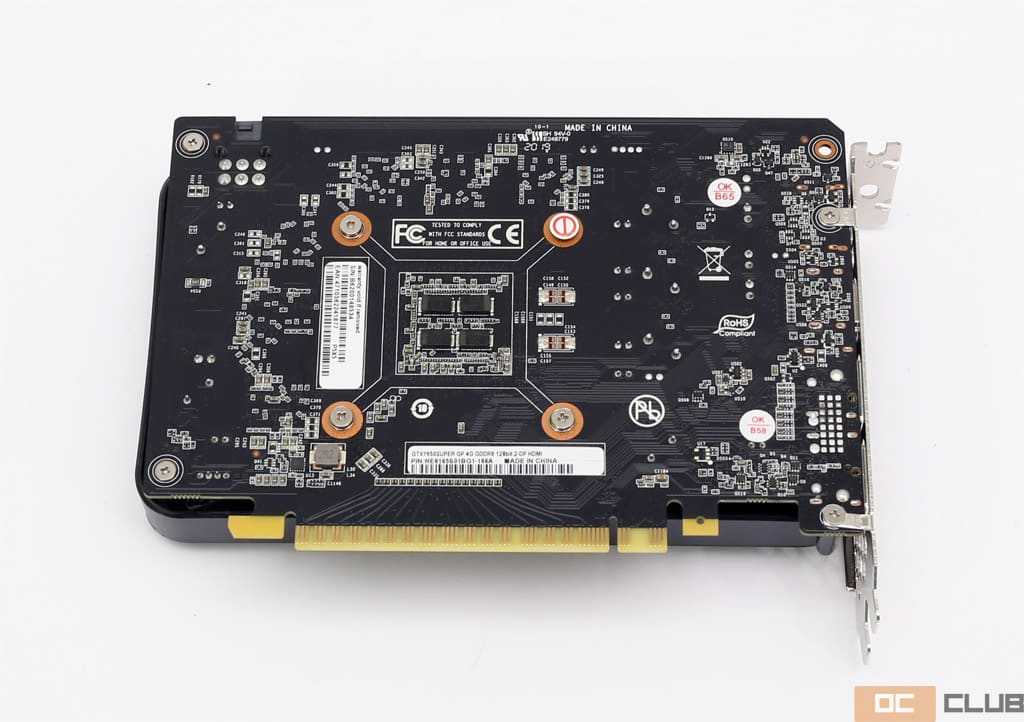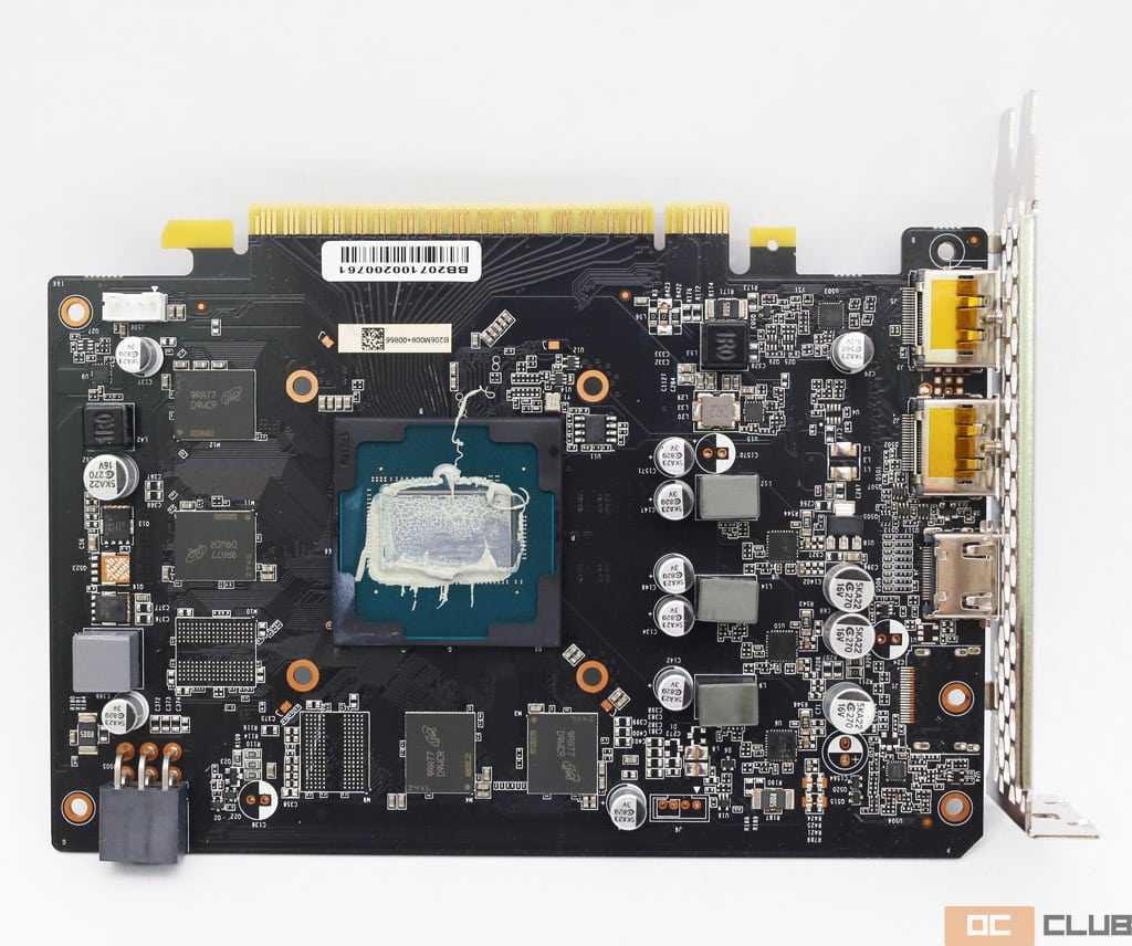 Дизайн платы почти целиком был унаследован от вышеупомянутой Palit GTX 1650 Super StormX. Конечно, есть минорные отличия, преимущественно возникшие из-за иного набора видеовыходов и их обвязки, но «костяк» идентичный.