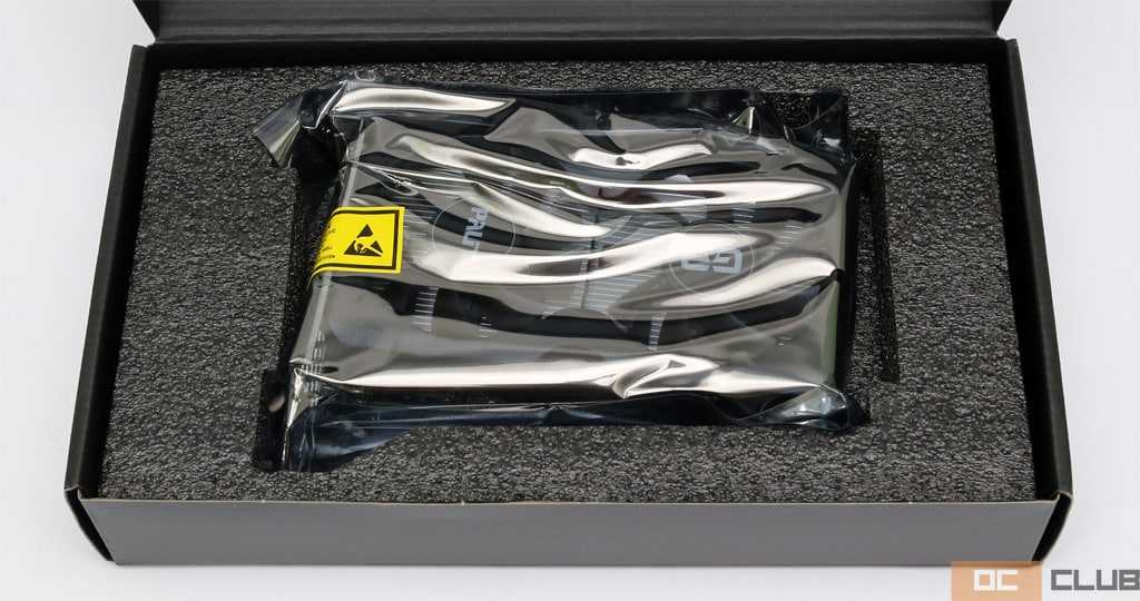 Внутри одной коробки вторая коробка, внутри которой в мягкой форме и антистатическом пакете лежит непосредственно видеокарта. Защита обеспечена нормальная.
