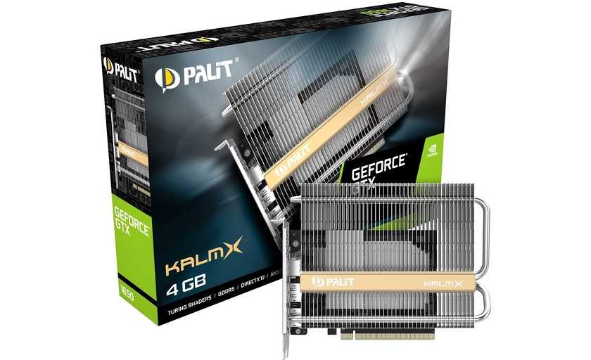 8 февраля 2020 года компания Palit Microsystems представила видеокарту серии KalmX – GeForce GTX 1650. Со слов производителя, Palit GeForce GTX 1650 KalmX с пассивным охлаждением и продвинутой мощной архитектурой Turing обеспечивает высокую производительность при полностью бесшумном использовании видеокарты.