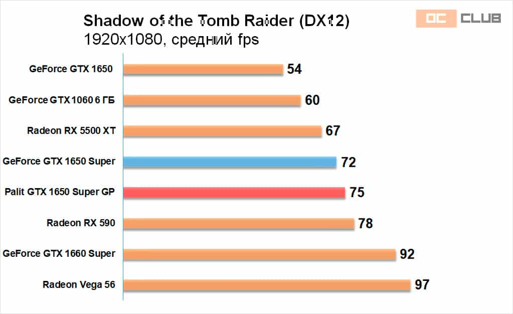 Конечно, наибольшим открытием стал тот самый порох в пороховнице. Барабанная дробь и… и самой разгоняемой видеокартой NVIDIA среди GTX 1600/RTX 2000 признаётся Palit GeForce GTX 1650 Super GamingPro. Вот так поворот! 6-8% прироста кадровой частоты – типичный для этих видеокарт результат. Но 12% – уже нетипичный.