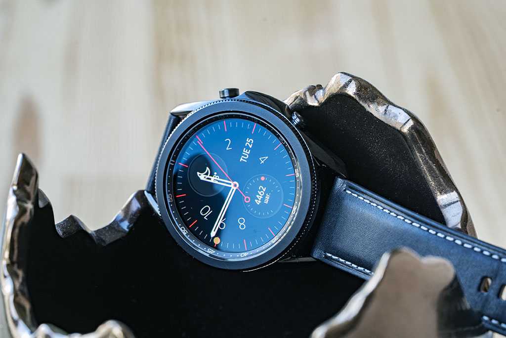 Galaxy Watch 3 — это возвращение в 2018 год, с большими выступающими кнопками и, да, с механической вращающейся рамкой для управления. Хотя такое решение и добавляет часам «массивности», оно придает гаджету привлекательный дизайн классических часов.