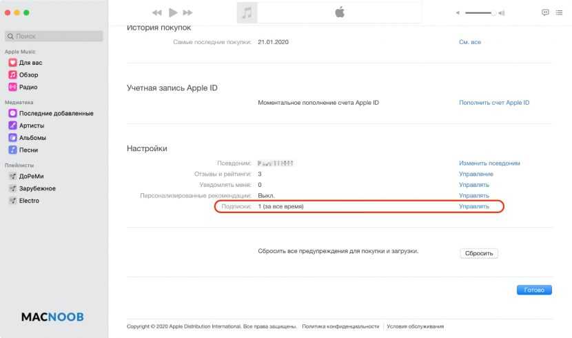 Программа iTunes предоставляет ещё один вариант удалить подписку на музыку для пользователей компьютеров Mac и Windows.