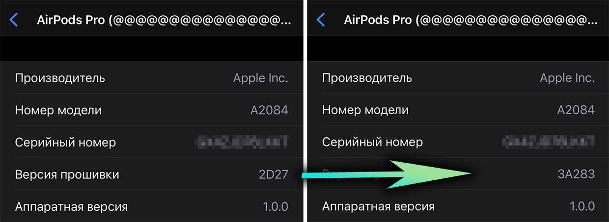 4. Прошивка AirPods Pro версии 3A283 или новее. Проверить свою можно, вставив наушники в уши и открыв на устройстве Настройки -> Основные -> Сведения об устройстве -> *название ваших AirPods*.