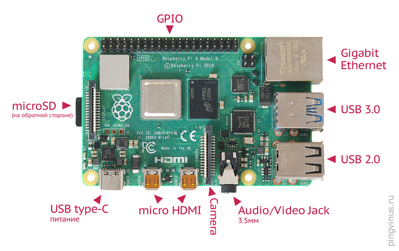 | Питание: | USB Type-C (5V, минимум 3А).Возможно питание через GPIO (5V, минимум 3А). |