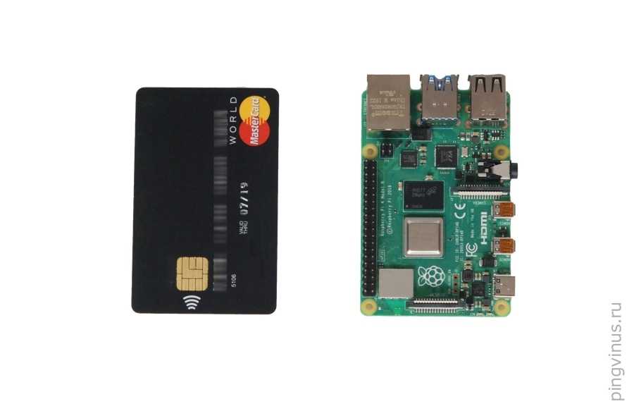 Размеры платы 8,5см на 5,6см. То есть это чуть больше стандартной пластиковой карты.