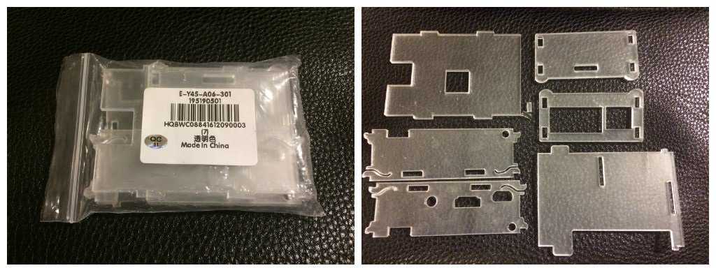Тот корпус, который я купил, сделан из прозрачного акрила (оргстекла) и поставляется в виде набора для самостоятельной сборки.