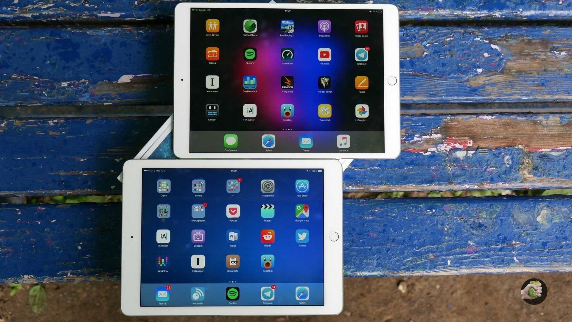 Вверху iPad с 10,5″ экраном, а внизу модель с 9,7″