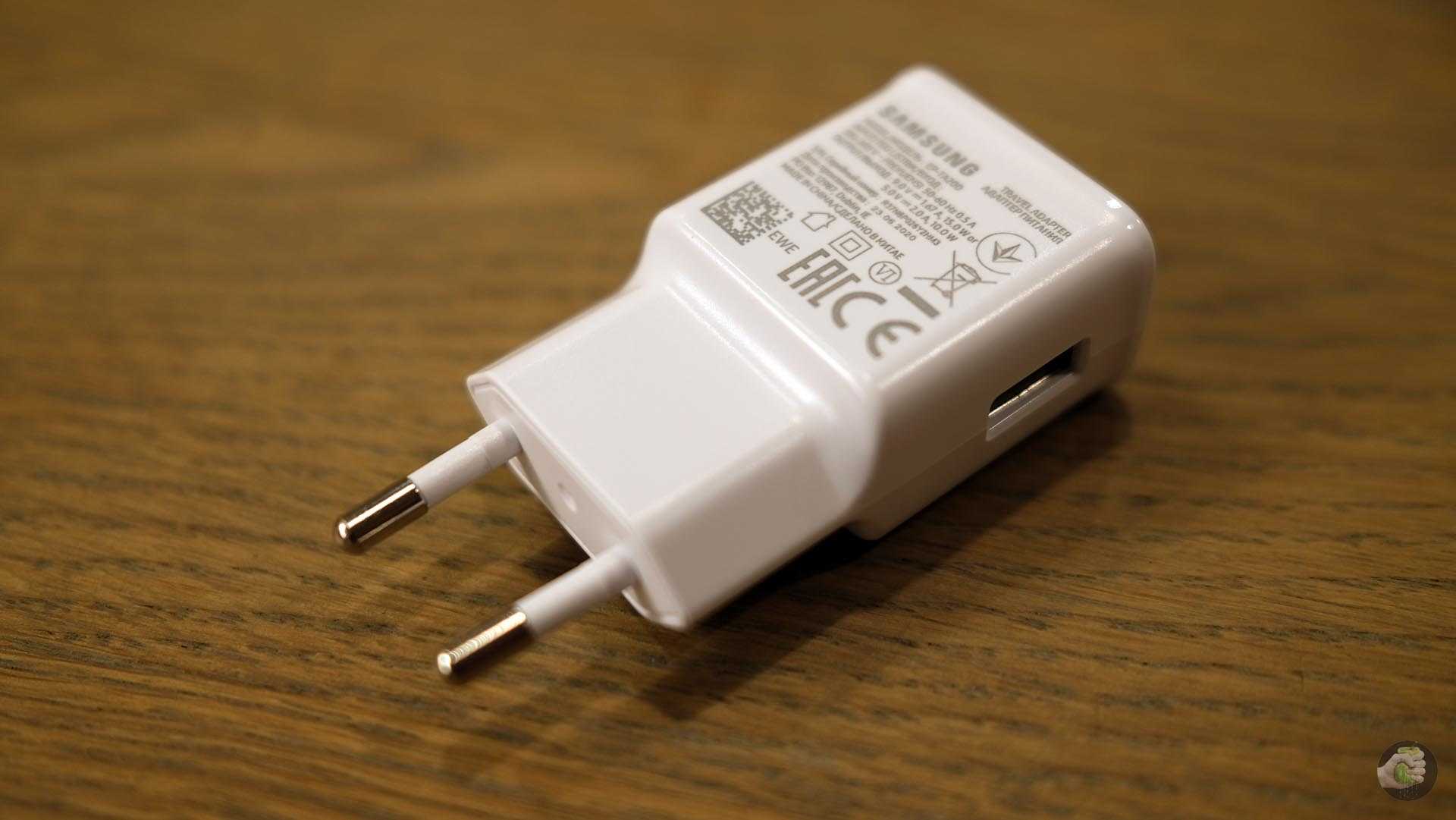 В комплекте вы найдёте смартфон, кабель и небольшую зарядку на 15 Вт. Тот случай, когда больше, чем у айфона!