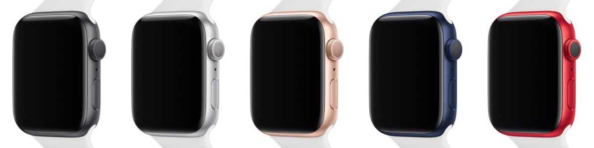 У шестого поколения часов сразу пять цветов. К трём расцветкам SE добавили ещё синюю и красную (PRODUCT)RED: