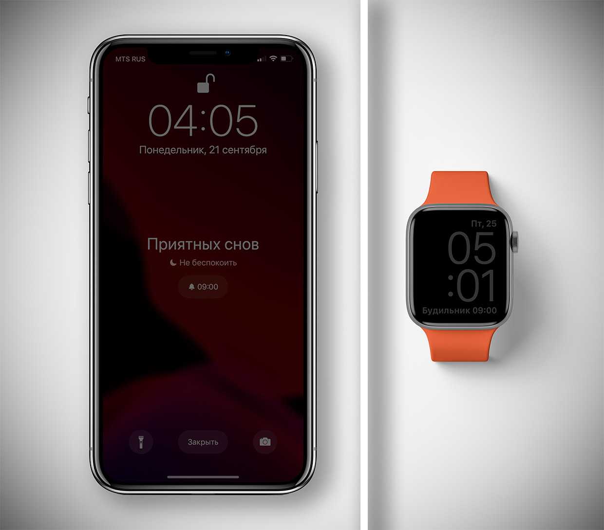 Как только наступает час Х, экран iPhone затемняется до супернизкого уровня, такой вручную даже не выставишь. В глаза он больше не бьёт, если проснёшься и захочешь время посмотреть. Включается режим «Не беспокоить» строго до времени желаемого пробуждения. Меняется даже экран блокировки: он становится двухуровневым, скрывает уведомления и не убирается случайным свайпом при разблокировке через Face ID.
