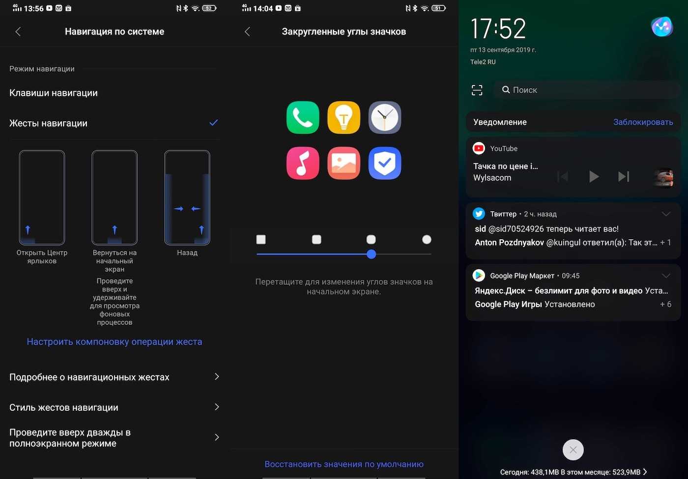 Для навигации по меню можно использовать три привычные для Android кнопки или переключиться на жесты. Система жестов продумана хорошо:
