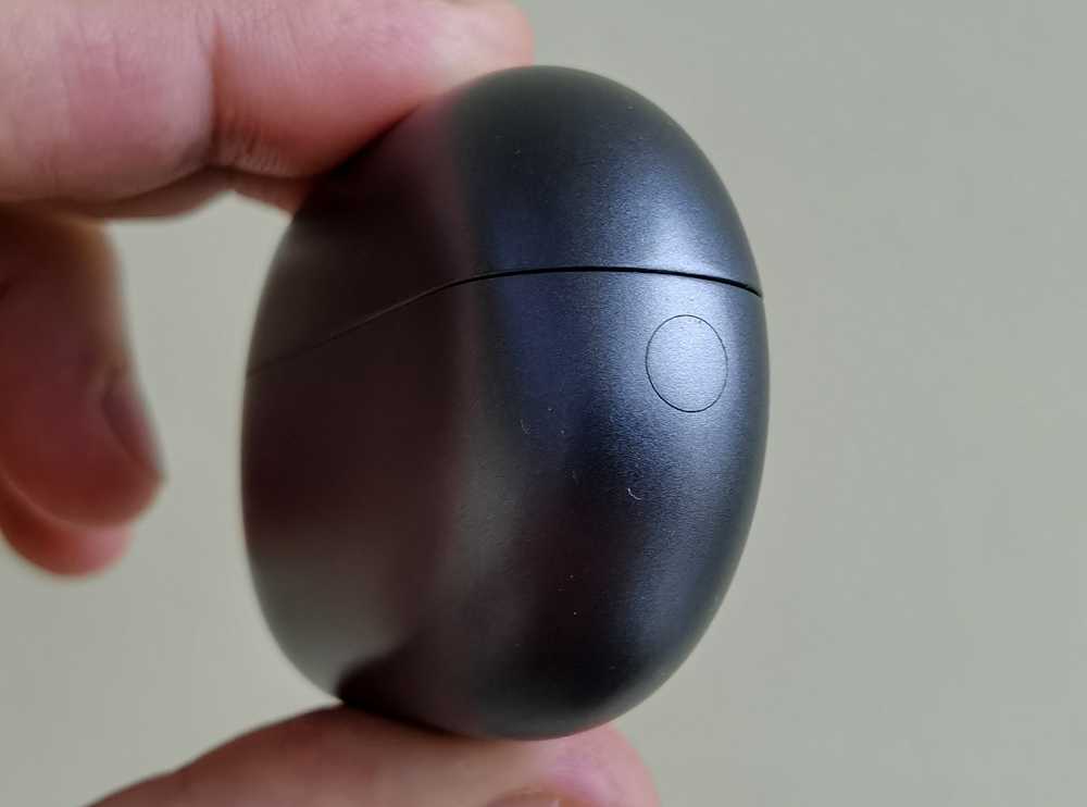 С другой стороны, чехол абсолютно симметричный со всех ракурсов и на ощупь плохо понятно, где верх, где низ, как открывать крышку. Это усложняет извлечение наушников из чехла в темноте. Хотя можно ориентироваться по глянцевой вставке, которая на ощупь гладкая. Немного помогает, но все равно, эти нащупывания отнимают пару секунд.