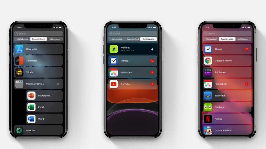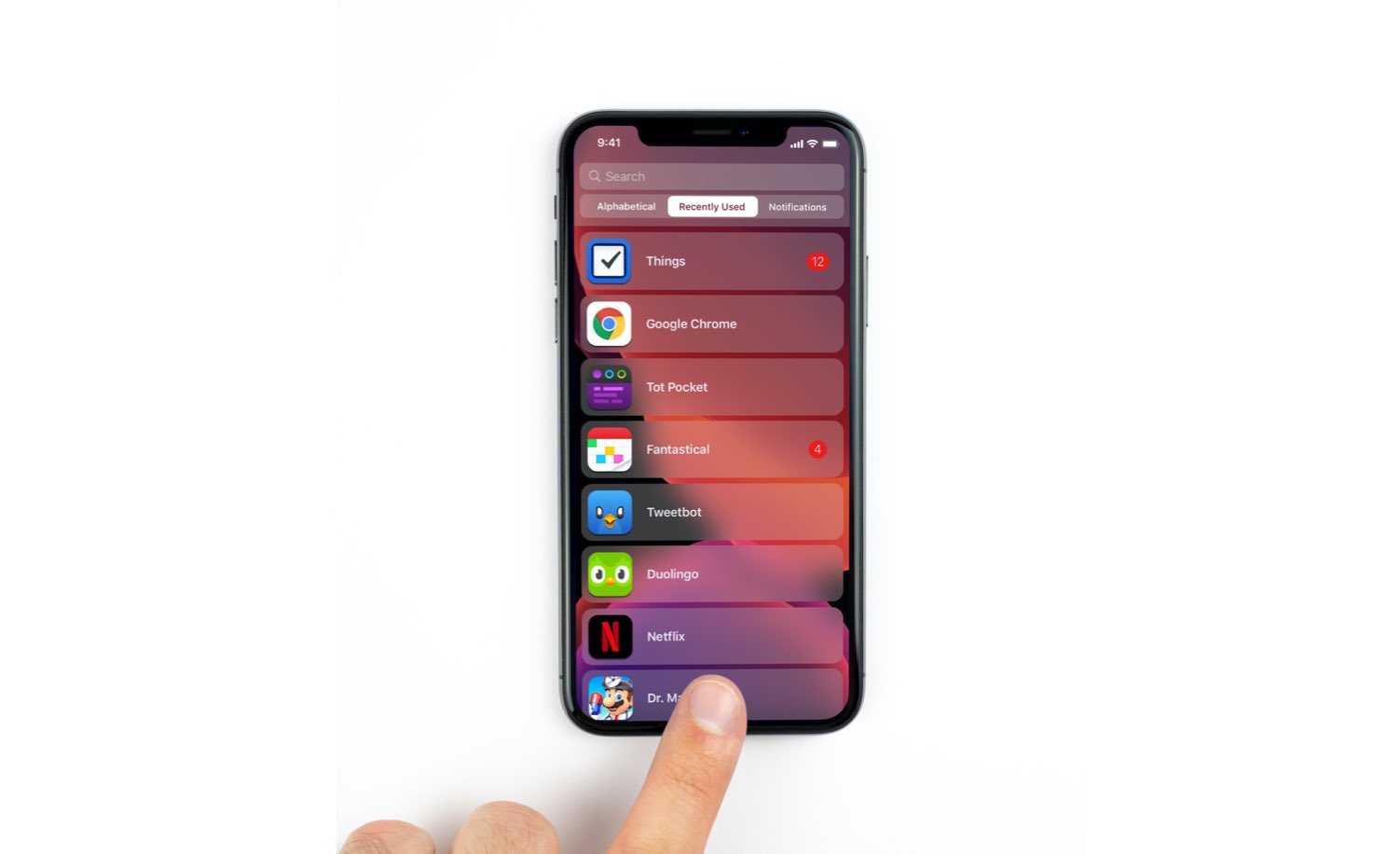 Все приложения на главном экране в iOS 14 будут доступны списком. Пользователи смогут сортировать приложения в списке по количеству непрочитанных уведомлений, частоте использования, алфавиту и предложениям Siri. Последнее позволит смартфону рекомендовать приложения в зависимости от геопозиции и времени суток. Например, когда вы в спортивном зале, Siri предложит открыть Музыку или Spotify.
