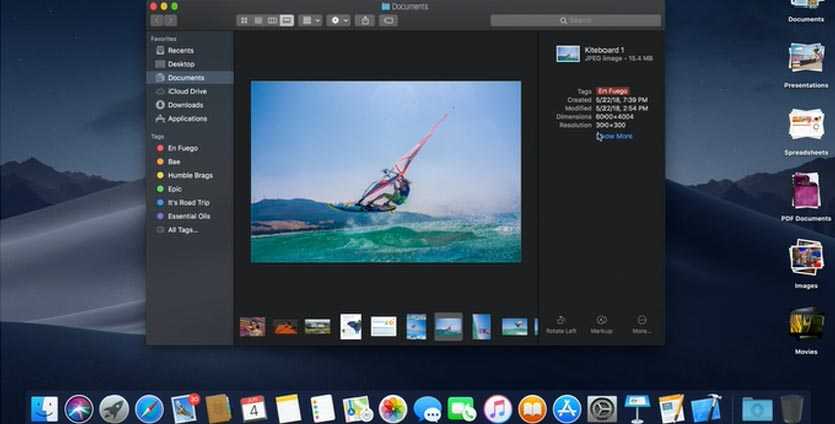 На рабочем столе добавили «стэки» – группы файлов, которые объединены по теме или при помощи тегов. Так на столе должно стать больше порядка и свободного места.