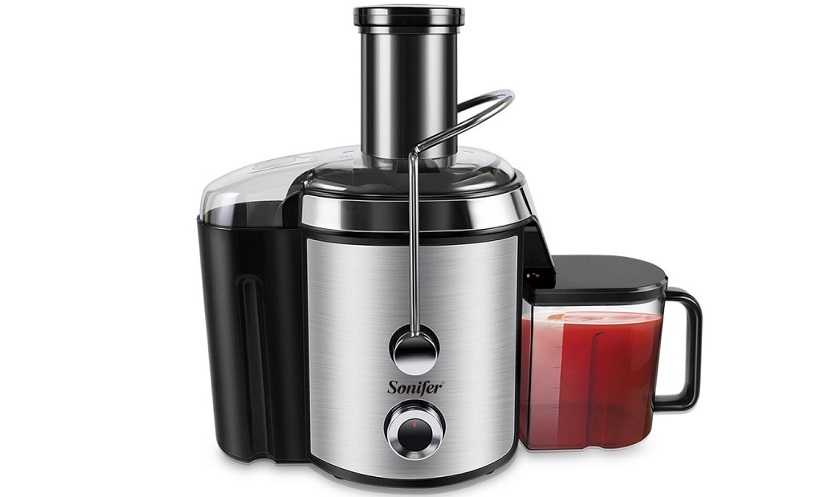 На втором месте центробежная соковыжималка из нержавеющей стали SONIFER SF5516. Высокопроизводительный мощный мотор обеспечивает до 18 000 оборотов в минуту. Работает соковыжималка на двух скоростях. Первая (12–14 тыс. оборотов) предназначена для сочных и мягких фруктов (арбуз, апельсин, виноград, банан), вторая (от 16 тыс. оборотов) – для твёрдых продуктов (яблоки, морковь). Загрузка осуществляется через специальное вытянутое отверстие диаметром 75 мм, что позволяет загружать даже крупные куски или цельные фрукты. Жмых собирается в ёмкость на 2 л, которая при сборке фиксируется к корпусу. Сок поступает в контейнер на 1,5 л. Он оснащён носиком, ручкой и крышкой, что позволяет хранить в нём свежевыжатый сок.