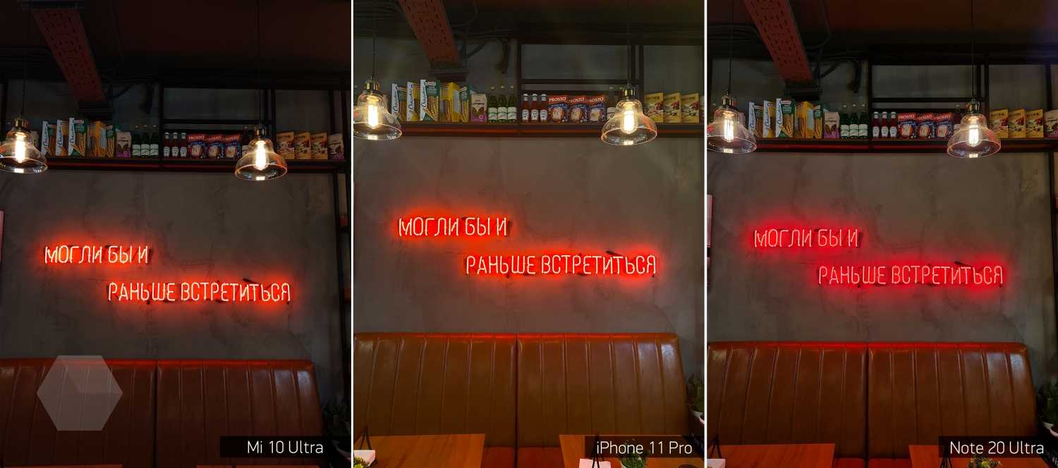 Вечером на улице всё неплохо, хотя баланс белого иногда хромает. А вот ночью явным лидером становится iPhone. Всё же у Xiaomi и Samsung тут не очень удачно отработали.