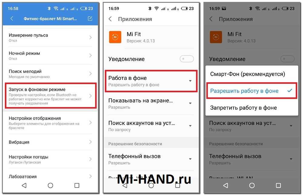 В случае постоянного отсутствия уведомлений рекомендуется проверить разрешение приложения на запуск в фоновом режиме. Для этого нужно зайти в приложение Mi Fit и пройти следующие шаги: