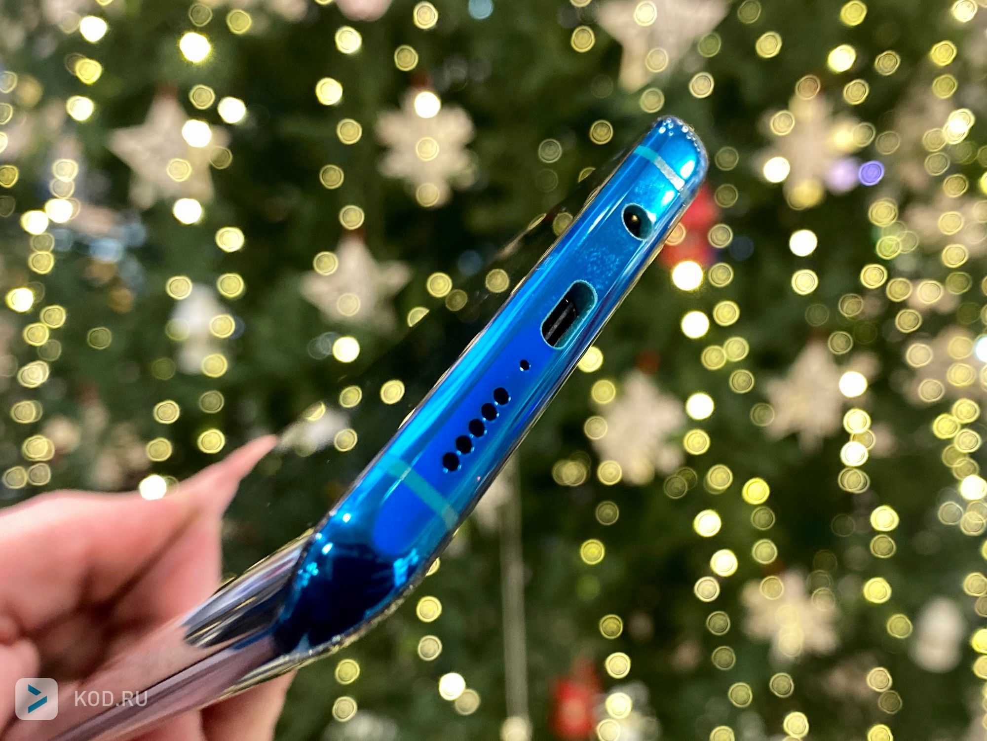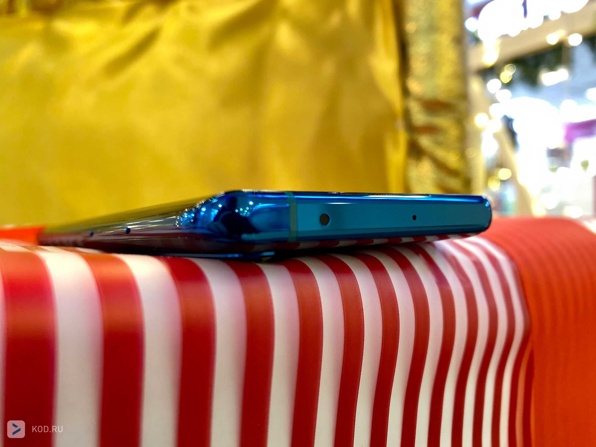 Еще один симпатичный элемент дизайна — плоские грани сверху и снизу. На скорость, конечно, не влияет, но премиальности корпусу добавляет. Снизу порт USB-C, микрофон, динамик и, внезапно, порт 3,5 мм. Заявлен также выделенный ЦАП, однако проверить звук по проводу мне так и не удалось, так как проводных наушников у меня давно попросту нет.