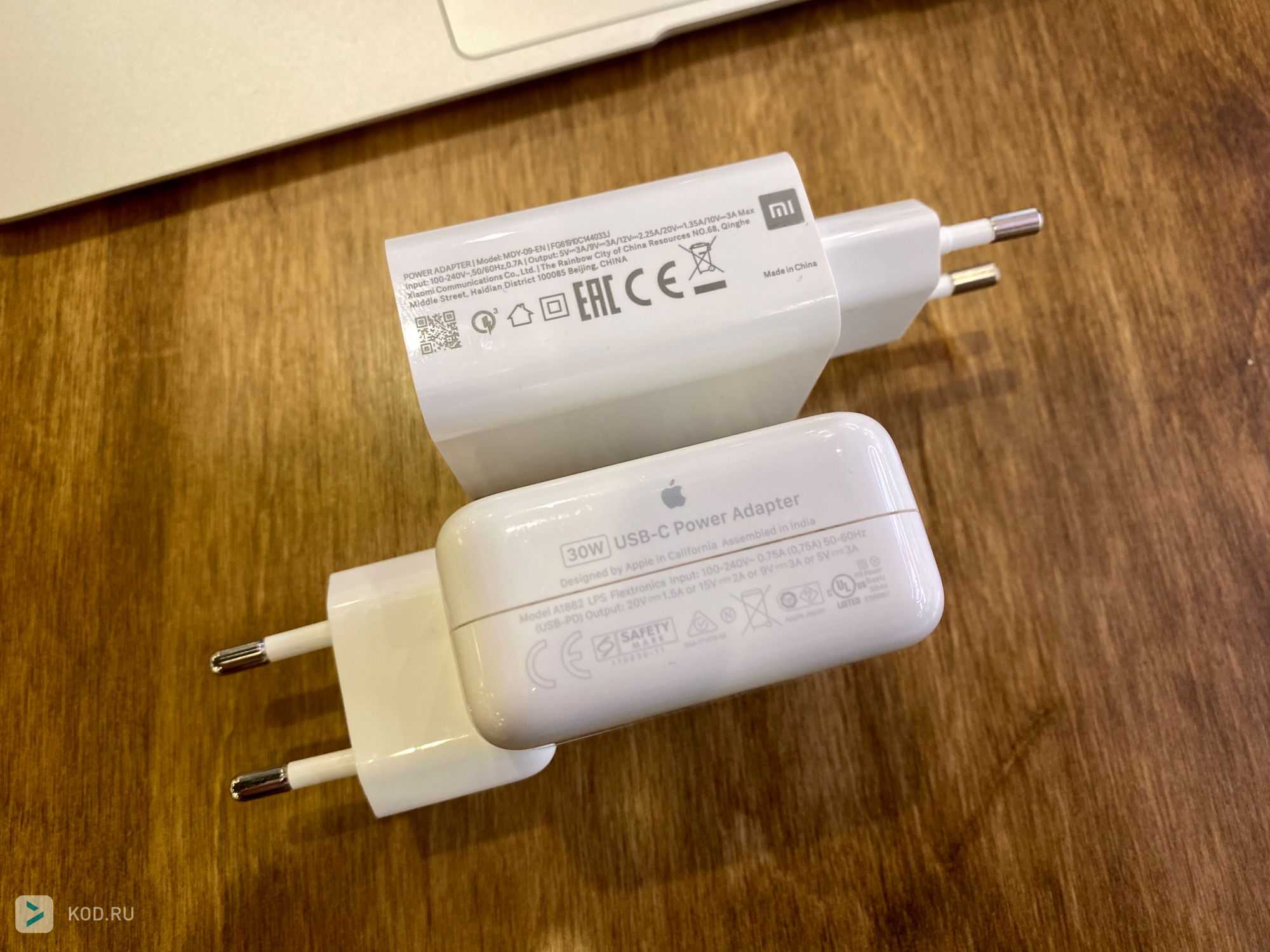 Из любопытства попробовал подключить Mi Note 10 к зарядному блоку от моего MacBook Air (тоже на 30 Вт), однако аппарат показал просто быструю зарядку, а не «турбо», и с 0 до 100% зарядился не за час, а за полтора. Полагаю, что здесь свою роль сыграло отсутствие у «эпловского» блока режимов 12В/2,25А и 10В/3А, заявленных в комплектном адаптере Xiaomi.
