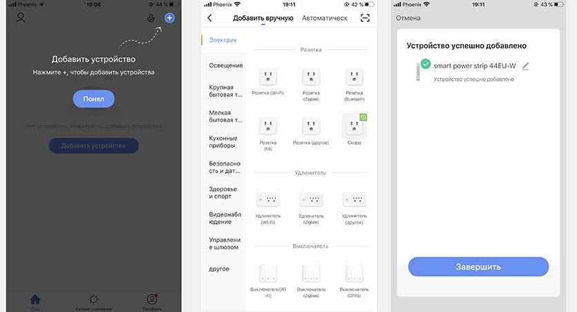 Сопряжение занимает не больше минуты, после чего каждая из розеток сетевого фильтра становится умной. Ее можно включать или отключать по расписанию или при помощи кнопки в приложении.